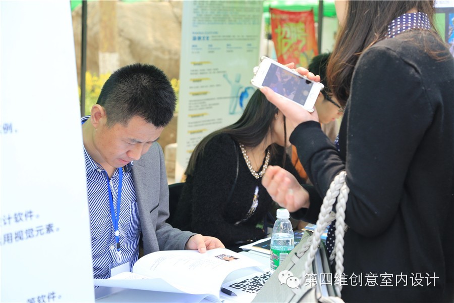 现场,DCV第四维品牌传媒-杨洋、DCV第四维主案设计师-呼延鑫热情接待了前来咨询的毕业生,和他们进行了各方面的交流,并查看了部分毕业生作品集,对现场收集的信息及时的归类和整理。