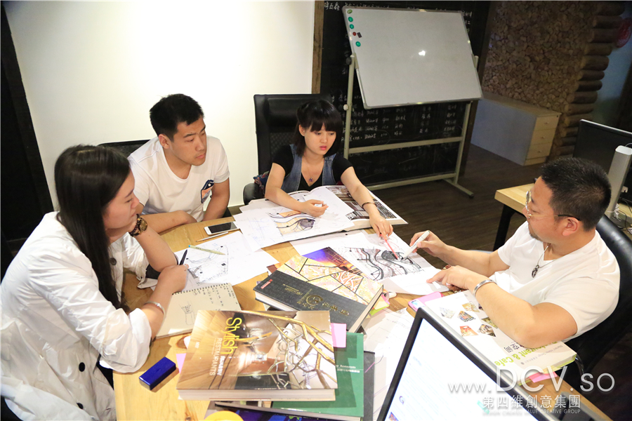 在讨论过程中,设计师们翻阅大量书籍资料,结合各自的创意想法,让平面方案更加细致、完善。