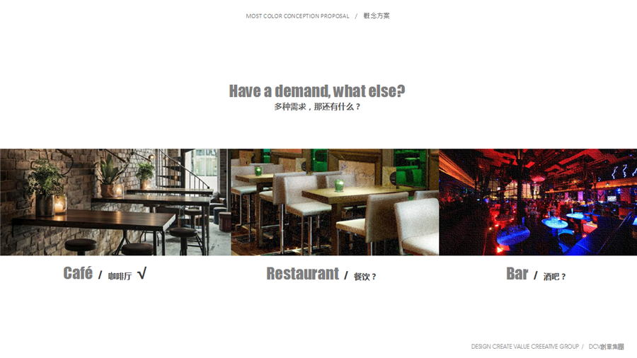 DCV创意集团 第四维室内设计,曲江,金地广场,MOST COLOR,音乐餐吧,平面方案,头脑风暴,多变体,美学设计MOST COLOR头脑风暴5月4日,DCV创意集团创意一部的设计师们对曲江金地广场MOST COLOR音乐餐吧平面方案进行了集中讨论。