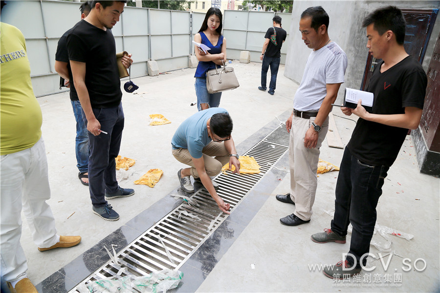 刚到工地门口,王总就对排水槽铁篦子的不锈钢材质提出调整意见,要求整体风格统一,换成钢板穿孔雕刻。