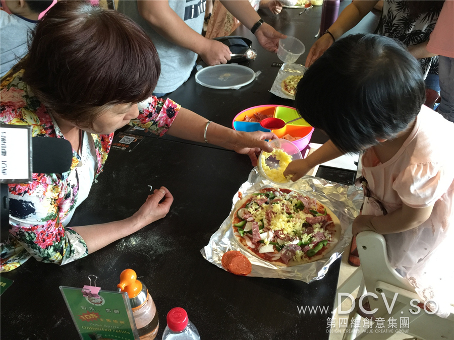 涂鸦环节结束之后,我们疯狂的小买家,以及最佳小卖家前五名的都获得了免费做披萨的机会,大家跟着自己的粑粑妈妈一起做了美味的披萨,而且还美美的饱餐了一顿,真心是好满足啊.