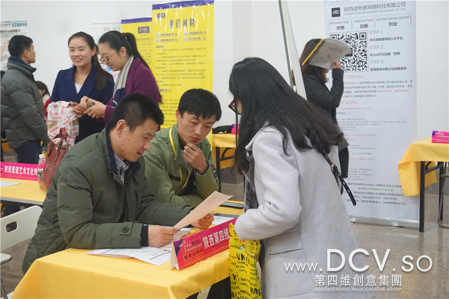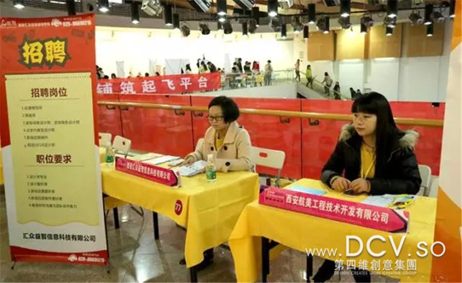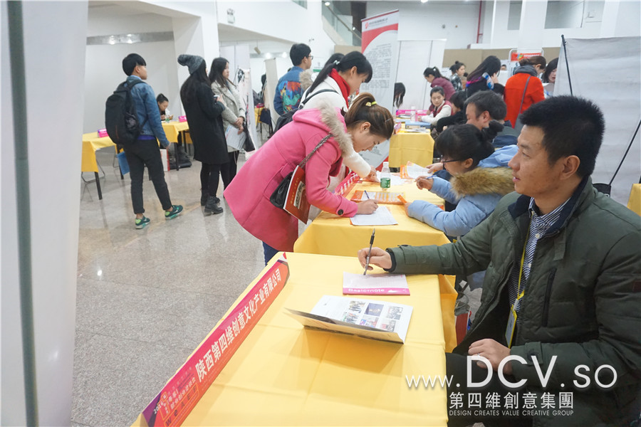 【资讯】走进西安美院—冬季校园招聘会,人才海选导读:2015年11月28日上午9点,陕西省2016届艺术类毕业生春季就业创业洽谈会在西安美术学院A馆如火如荼的开始了,DCV作为企业代表参加了本次洽谈会,为公司未来发展储备力量!