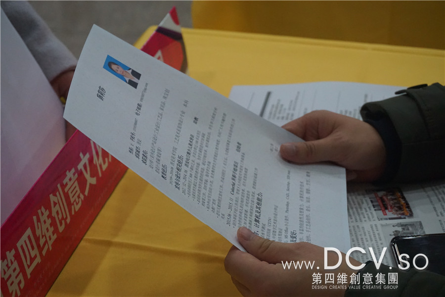 现场,DCV第四维品牌传媒总监-杨洋、DCV第四维传媒部主管-张卫博热情接待了前来咨询的毕业生,和他们进行了各方面的交流,并查看了部分毕业生作品集,对现场收集的信息及时的归类和整理。