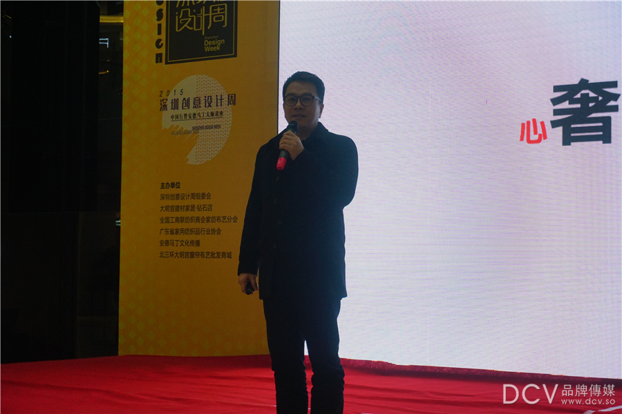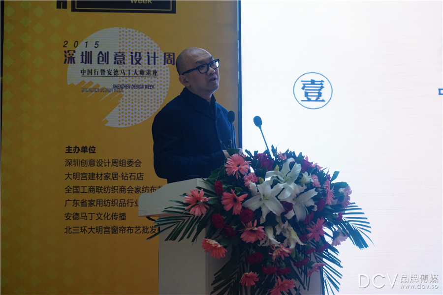 14:15,主持人宣布此次大师讲坛正式开始。首先,主持人为大家介绍本次讲坛讲师:张清平、郦波和其他重要到场嘉宾,并对到场设计师表示欢迎。他向大家介绍了深圳创意设计周的基本概况,他表示将举办深圳国际家纺展、开放深圳国际家纺展览会、家居中国创意周。国内现在的陈列已由单向营销,开始整合方向发展。我们强调设计对产品及市场营销的推动。设计周与安德马丁奖联手,将标志外国设计力量及国内设计量的互动。未来我们将积极融为一体,为国内家居及软装贡献力量。诚邀现场设计师见证深圳设计周及安德马丁颁奖典礼。