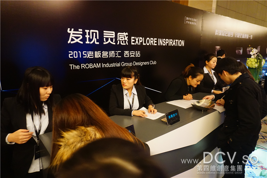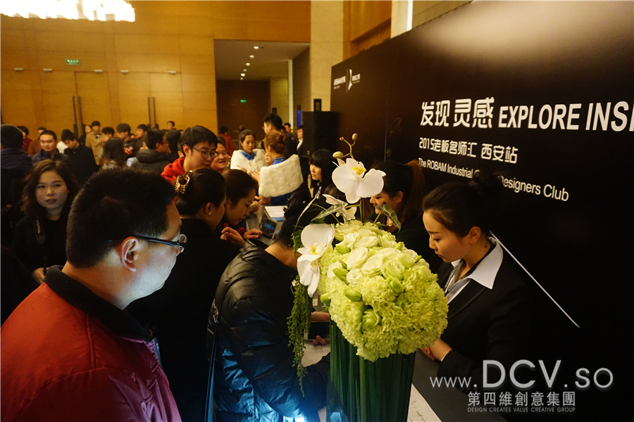 下午13:20参加活动的设计师已在会场外签到等候入场,场外设产品展,场内在紧张的布置。