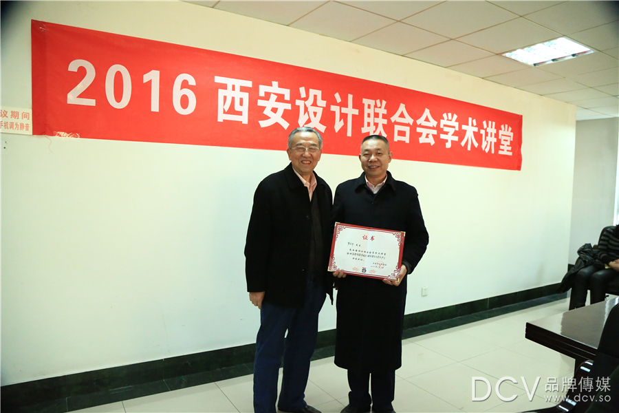 ▲西安设计联合会会长—陆长德(左)为罗老师颁发证书