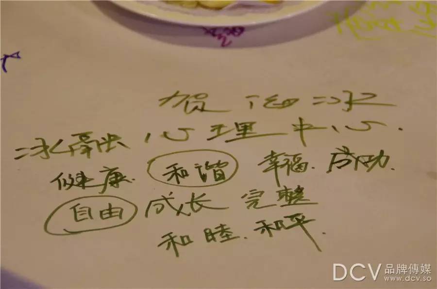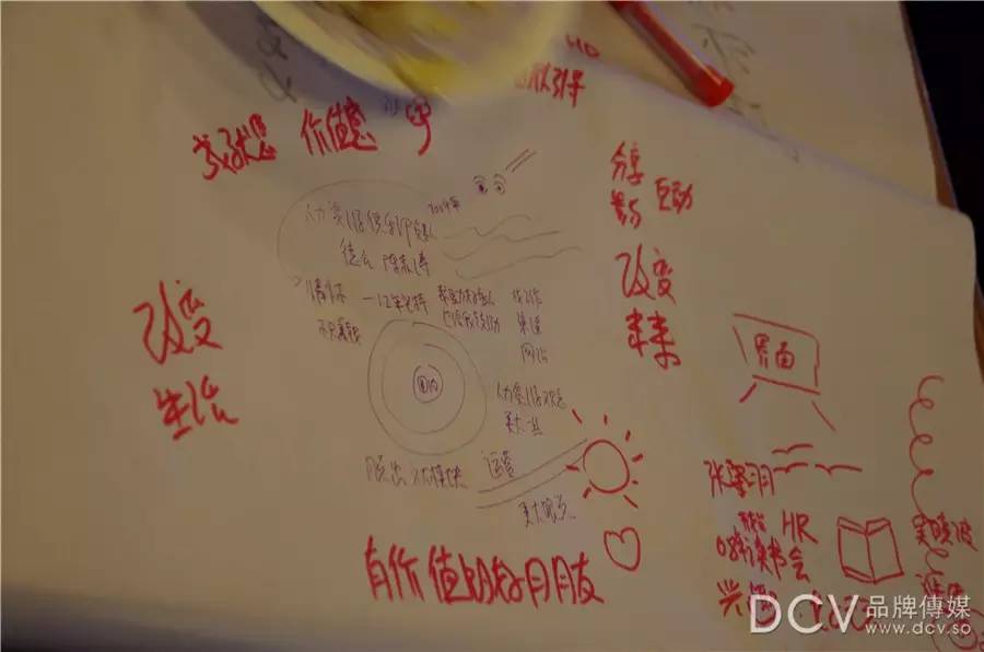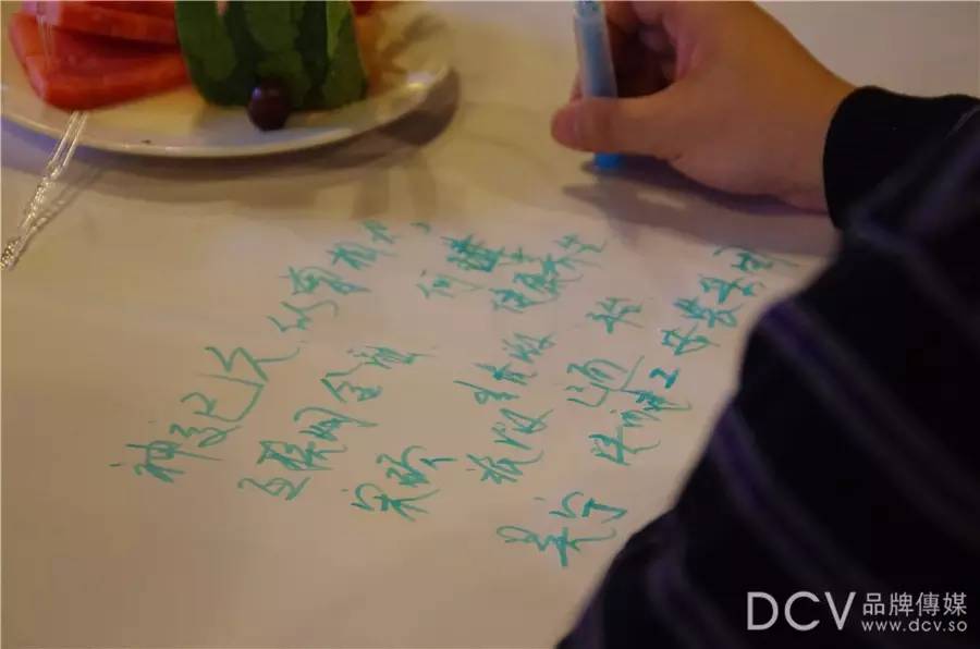 每轮结束后成员们静默思考,并将思考内容写在桌面咖啡布上,3分钟分享,分享结束后成员互相提供创新补充6分钟,最后组长总结。