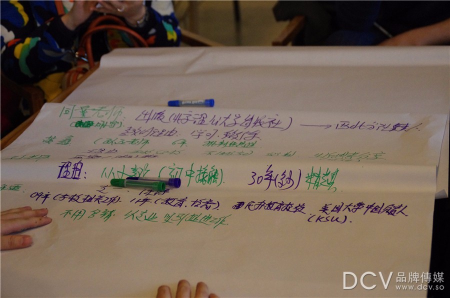 史老师做完报告后主持人李朵让大家分为11个小组,每一组有一个引导老师,引导大家来一起探讨,一共分为三轮活动。