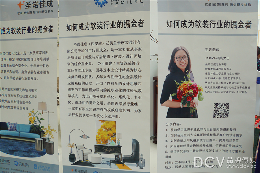 4月27日下午1:40,圣诺佳成将在高新四路居然之家店一楼大厅主题公开课活动正式开始。圣诺佳成是国内首家专注于设计行业体验式教育培训机构,时刻肩负时尚软装行业的使命,引领一个时代,带动整个软装配饰行业。