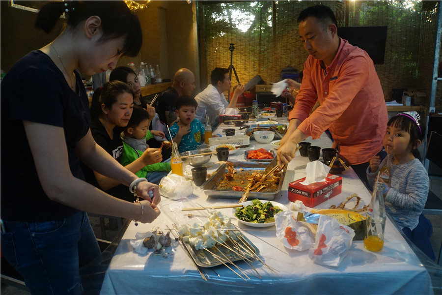 这位姓魏的师傅(域见舒适家居Boss),的烤肉技术也是一流,每烤完一束都被一抢而空。