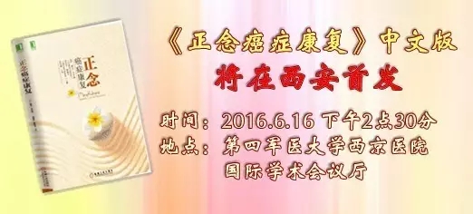 由中国抗癌协会的邀请,本书的原作者加拿大资深社会心理肿瘤学专家“琳达·卡尔森”教授和译者美国佛蒙特大学医学院癌症研究与治疗中心助理教授孙玉静博士将于6月16日到达第四军医大学西京医院,举办“正念癌症康复(心理)国际研讨会”,届时将于广大医务工作者、癌症患者及读者等见面,并进行该书的首发仪式。
