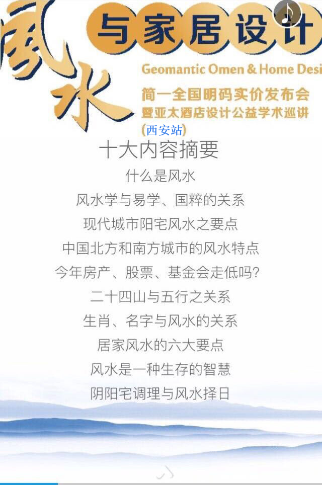下午2:30分活动正式开始,“简一大理石瓷砖全国明码实价发布会暨亚太酒店设计协会风水与家居主题巡讲(西安站)”携手国际著名风水大师赵丹青走进西安,与您面对面揭秘家居风水的玄机,讲述家居风水与财运、事业的关系,为西安简一的业主朋友们献上一场独特的风水文化盛宴。