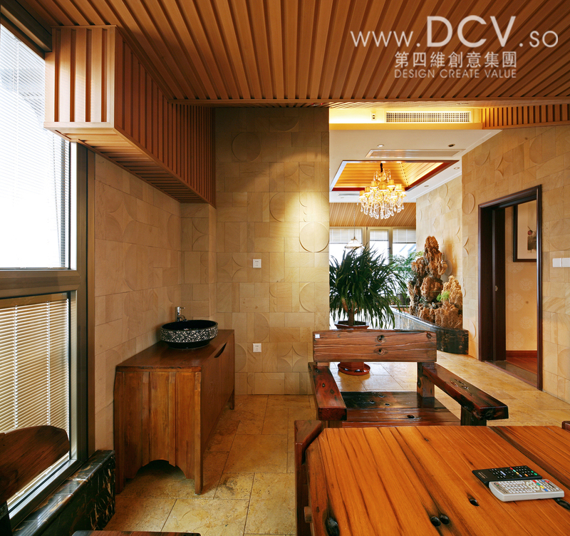 中式古典元素与现代材质的搭配使用。简中风格它既有中式的古朴典雅又有现代元素的轻灵简洁,传统的花格窗往往在茶镜的陪衬之下,虚实结合,虚而不透。