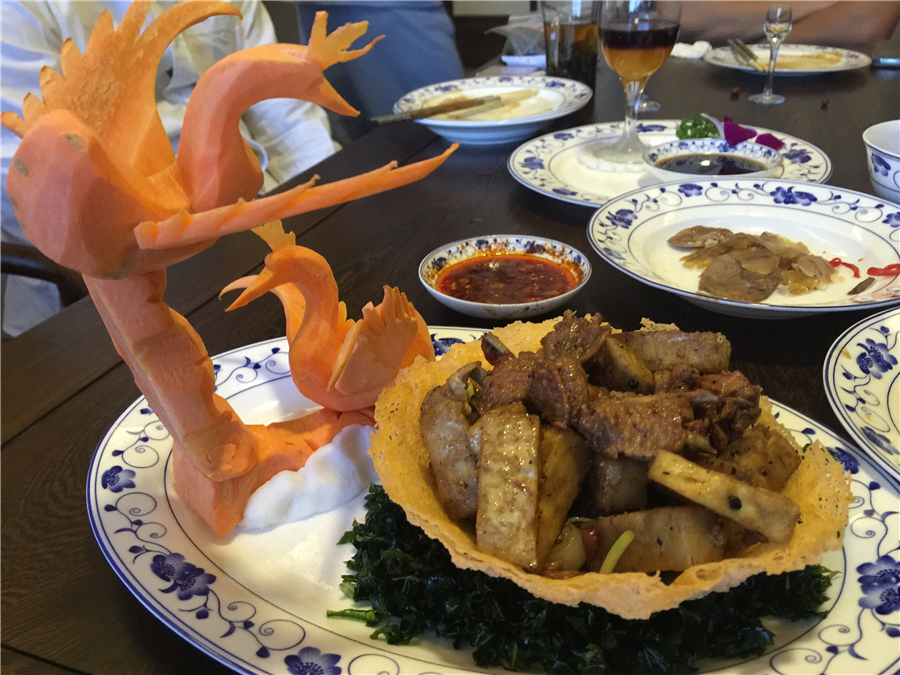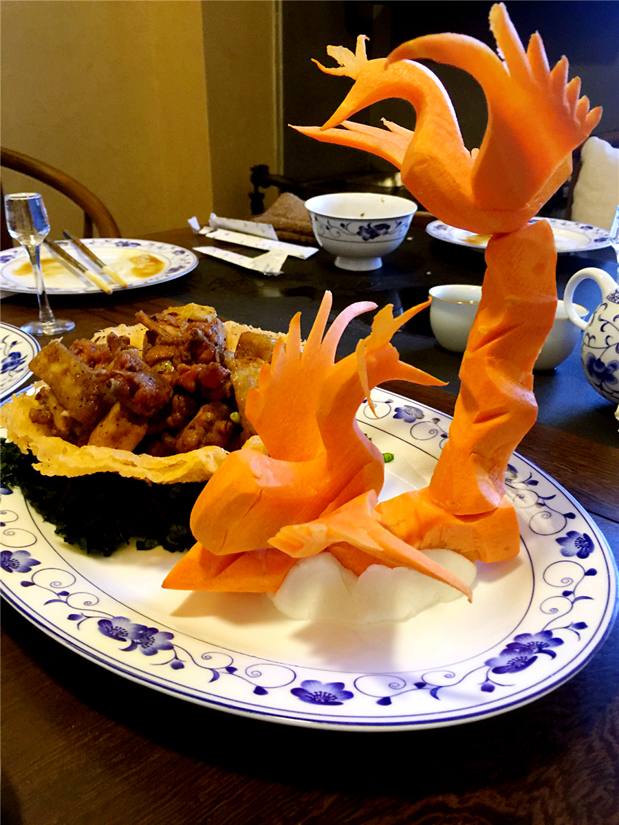虽然名为茶室,不过却是地道吃饭的地方,当然更可以吃早茶、午茶,各式小点都非常精美。但是这里被当地文人所 青睐,不仅因为食物的美味,还因为店堂布置典雅——这当然是指相对于当时时代而言,更还有大师字画摆设。《青阶茶室》在宝鸡可谓是鼎鼎大名。