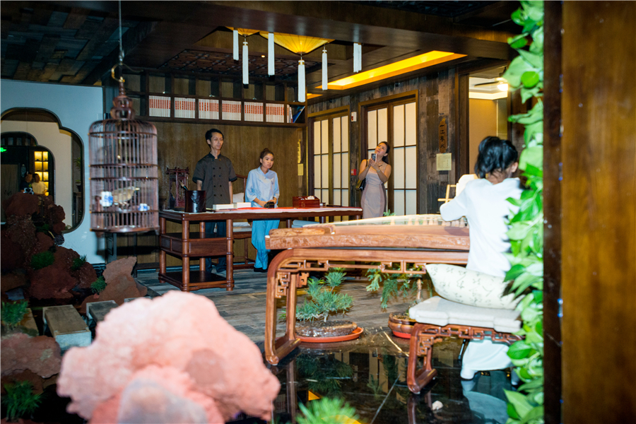 茶室里美女弹奏,悠扬的琴声,听了良久。。。。。。