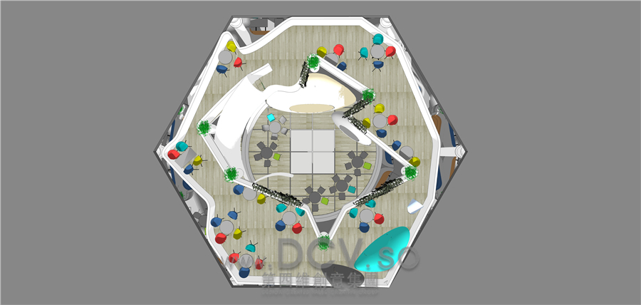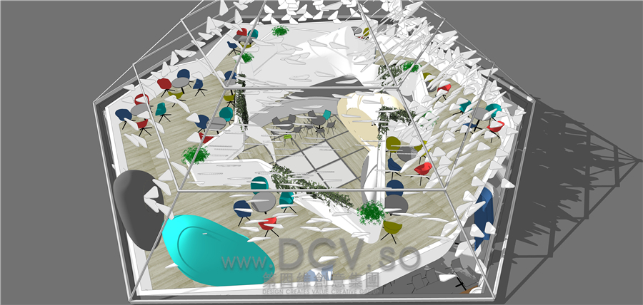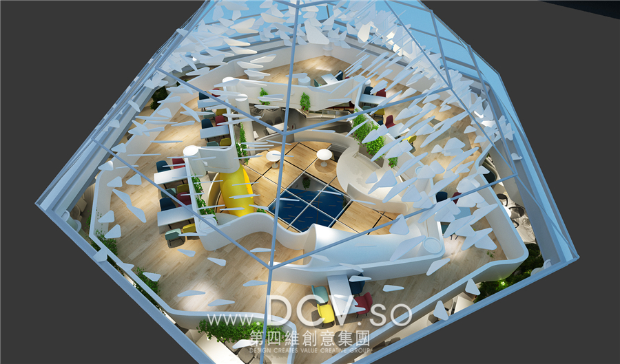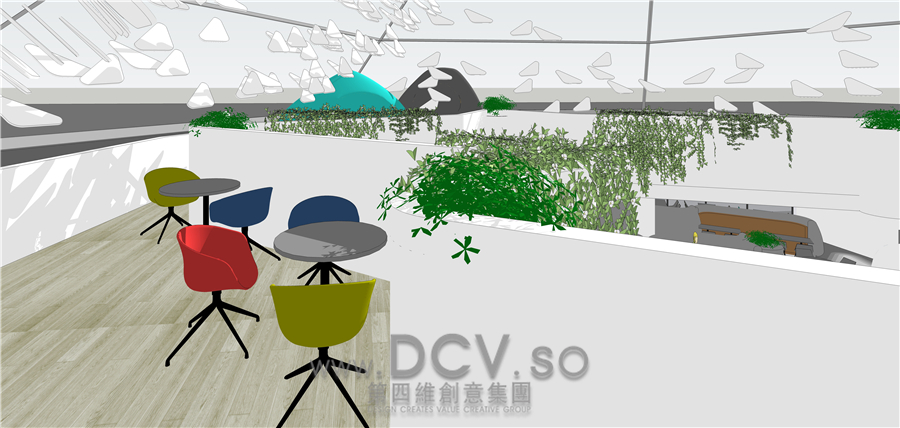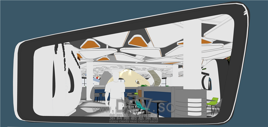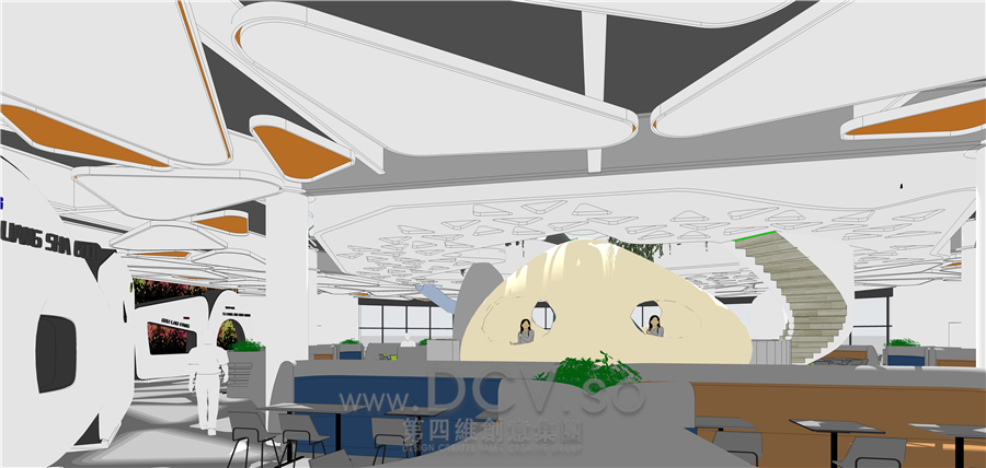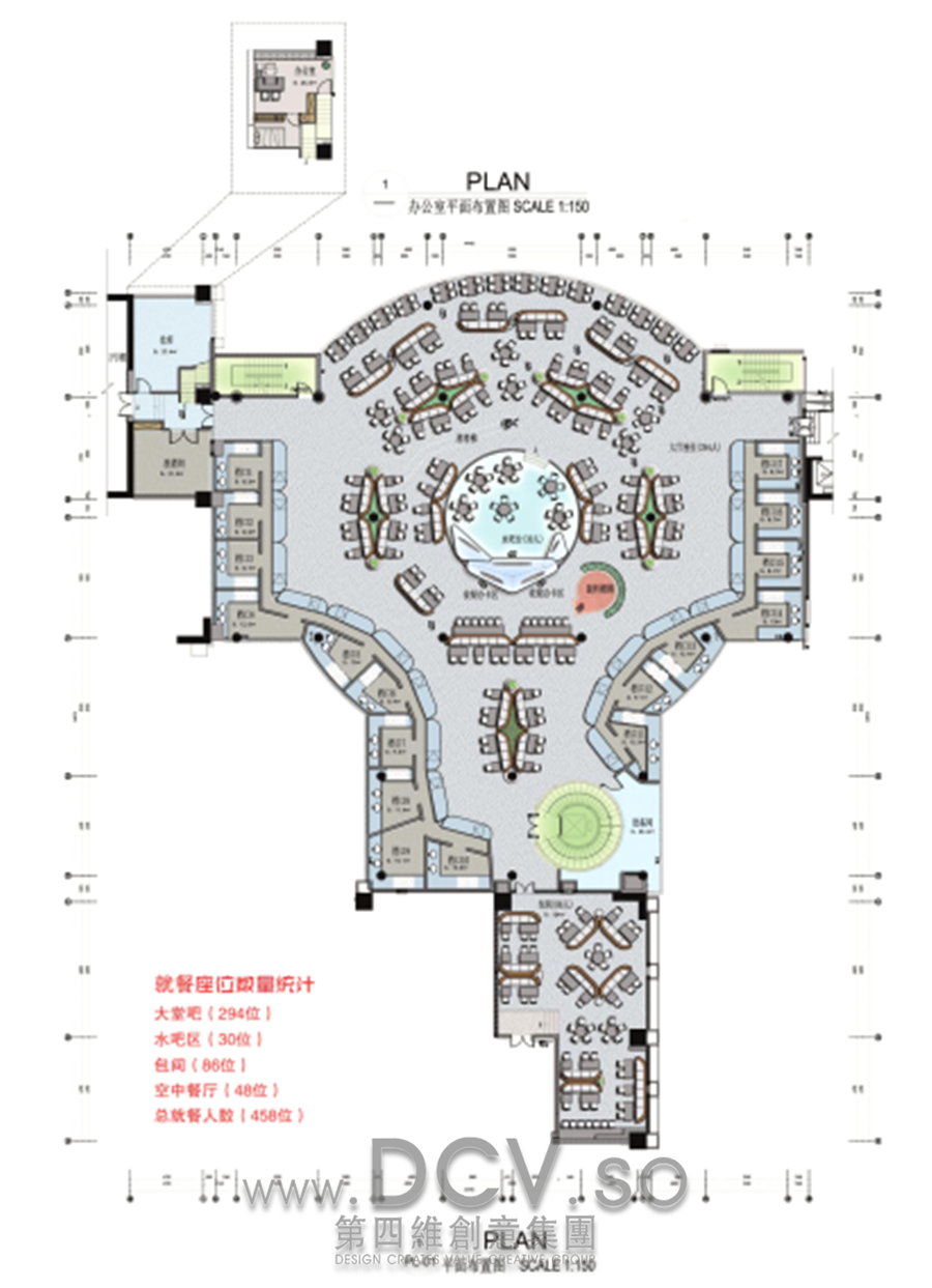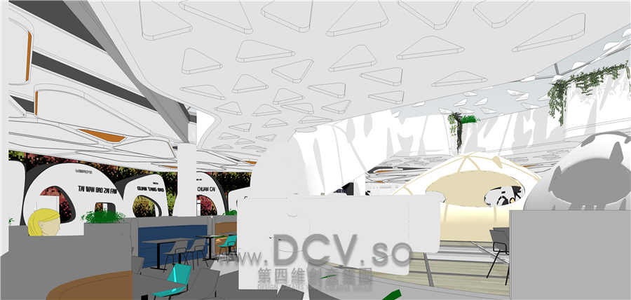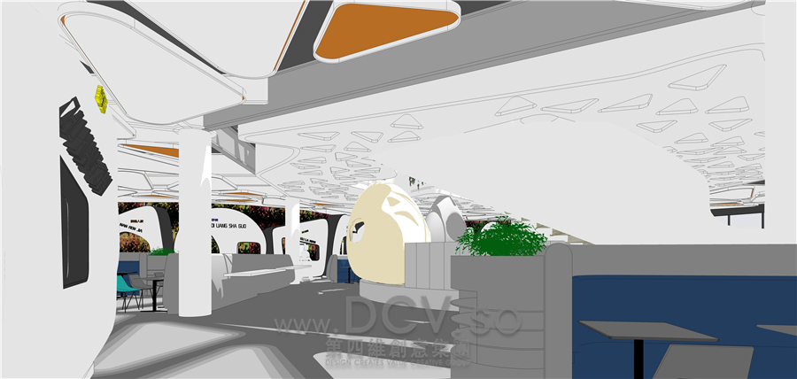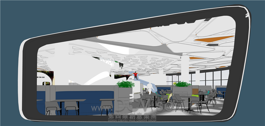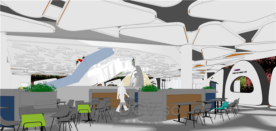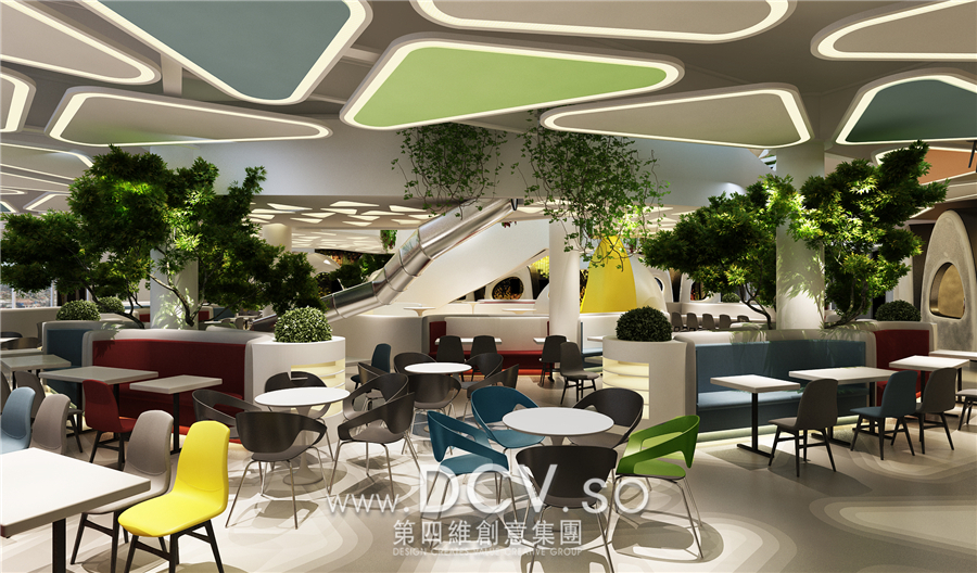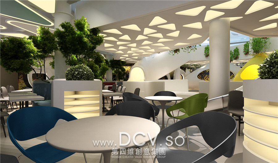 本案旨在打造一个时尚、现代、生态、国际化的大型餐饮空间。